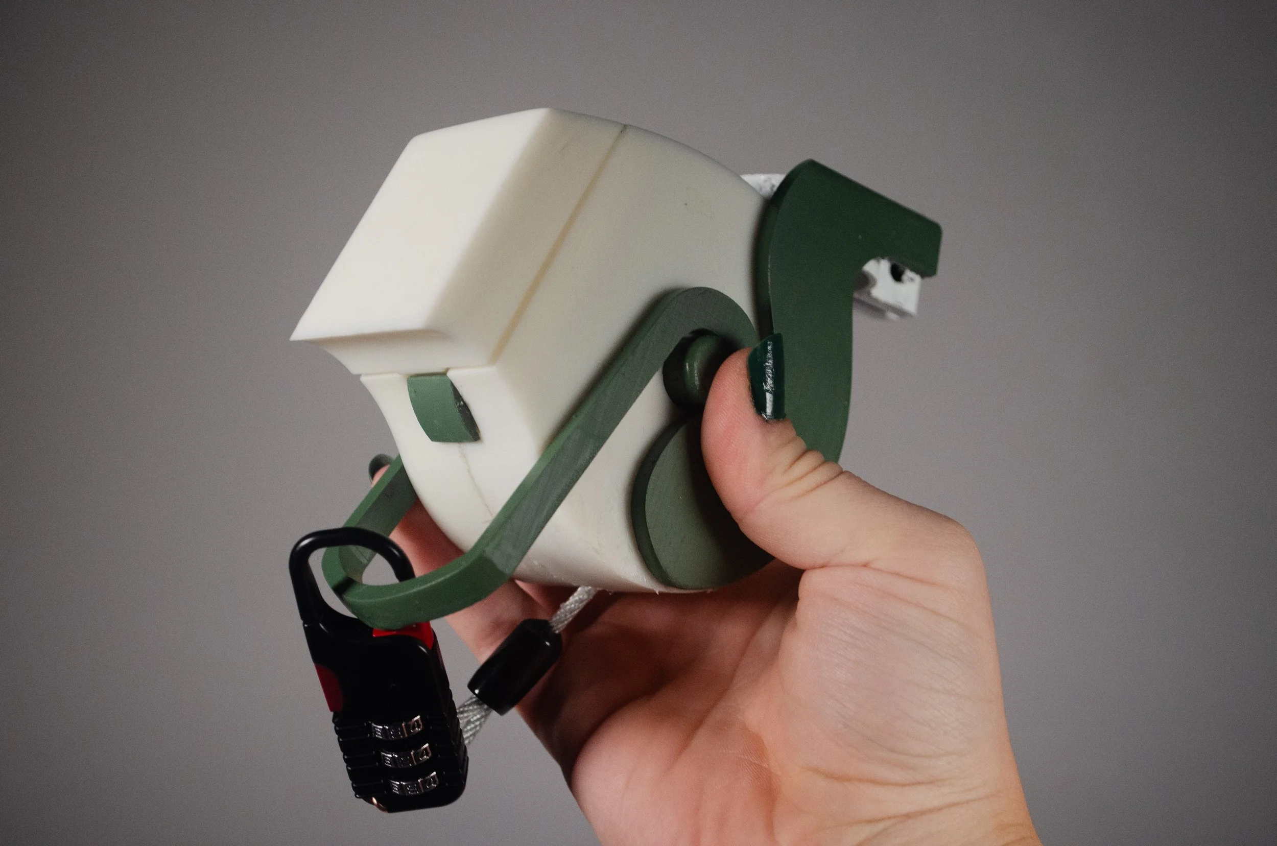 when creating my lock, I kept thinking about the setting that my bike lock would be most commonly used in. knowing that my lock would most likely be used on a trail ride, I started looking for inspiration on what to model the form after and settled on the squirrel. I wanted my design to resemble the funny comforting creatures that roam the bike trails.