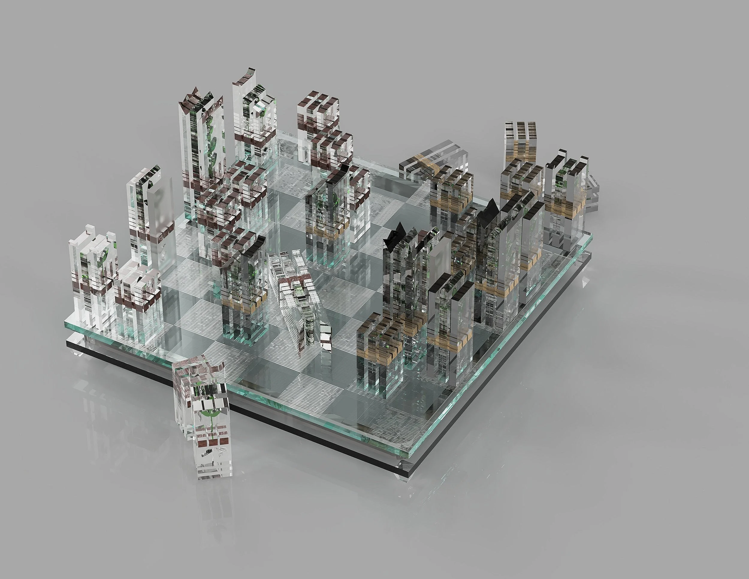 to create a chess set of six individual pieces that have a familial resemblance amongst a common theme. each piece in the set must be easily identifiable while also maintaining a new and interesting form. the final set should be easily replicable for the possibility of mass production.
