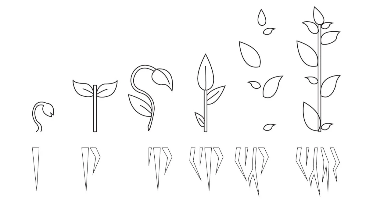 final round root iteration: further developed the idea of the root “growing” throughout each piece. in an organic approach with each root, the pieces move up in rank causing the roots to get longer and have more branches.
