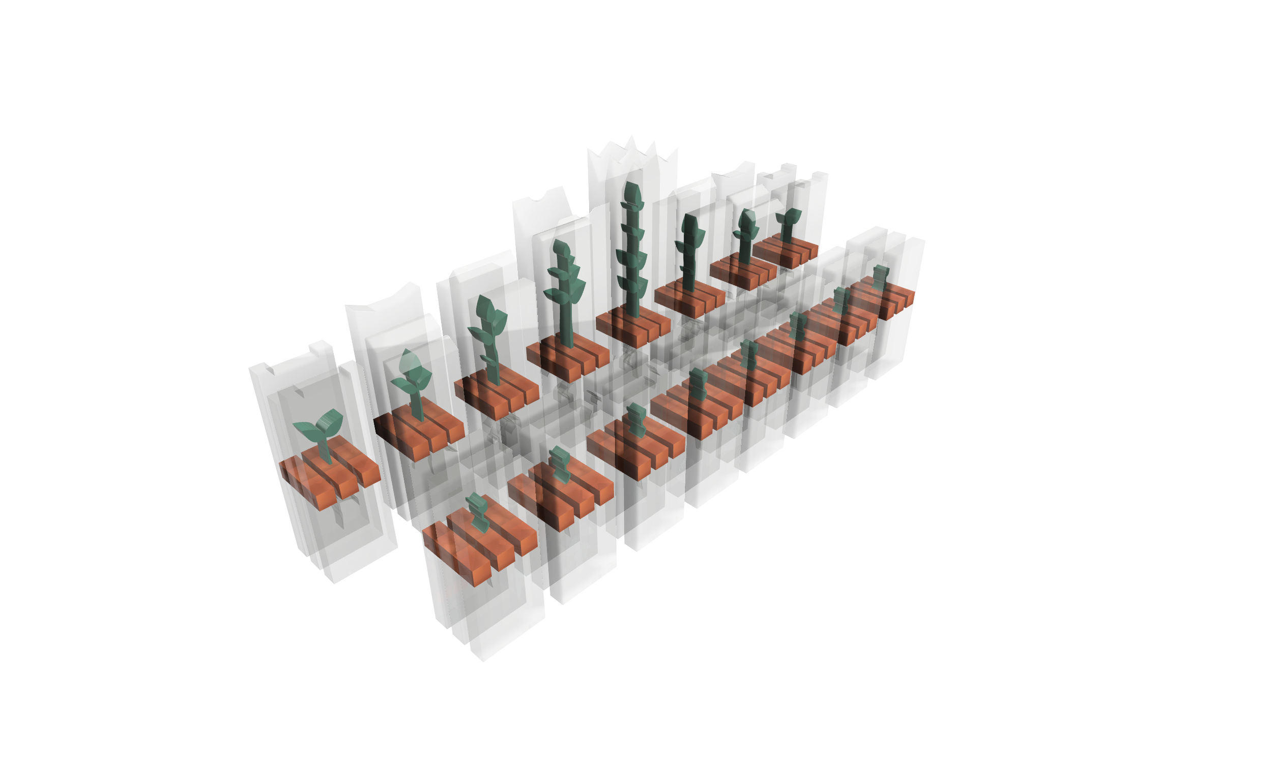 third round iterations: decided to make all the forms an evolution from the same plant.